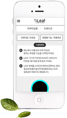 请在菜单中选择符合使用者的皮肤类型和所需的化妆品功效 - 02Leaf 기기의 두번째 Smart Update